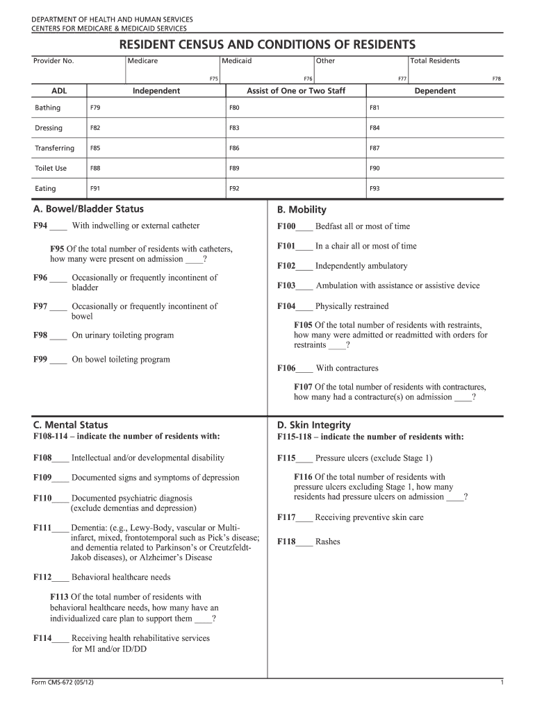 4.Before filling out the form, gather necessary information about each resident, including their demographics, current health status, and any specific needs.