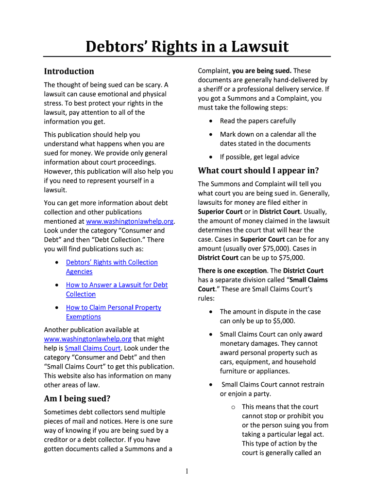 Get the free Debtors' Rights in a Lawsuit - LawHelp.org - lawhelp