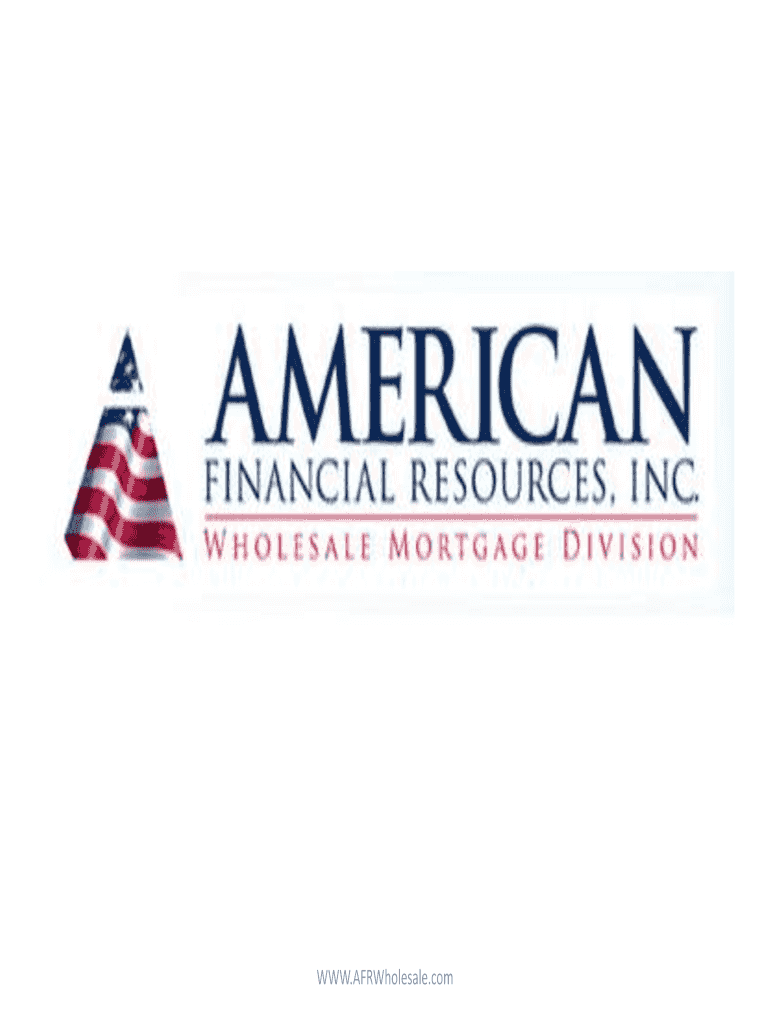 WWW.AFRWholesale.com Doing business with American Financial Resources, Inc As a TPO As a TF WWW.AFRWholesale.com American Financial Resources Wholesale Lending Division To register your loan and get