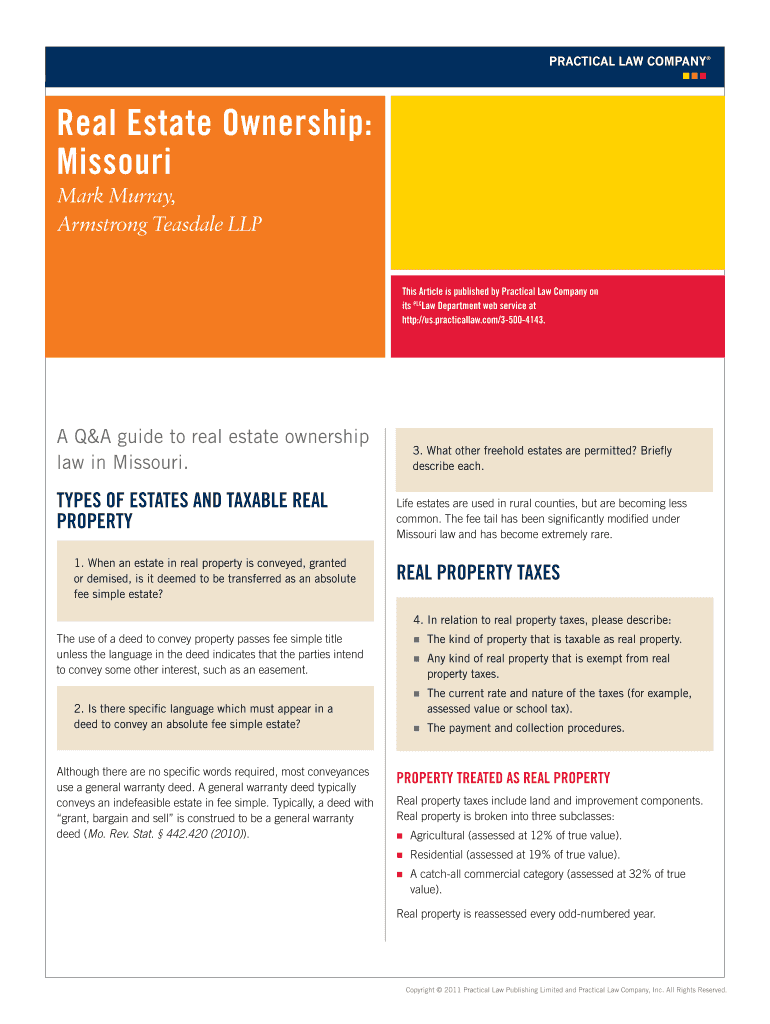 Get the free Real estate ownership: Missouri - Armstrong Teasdale LLP
