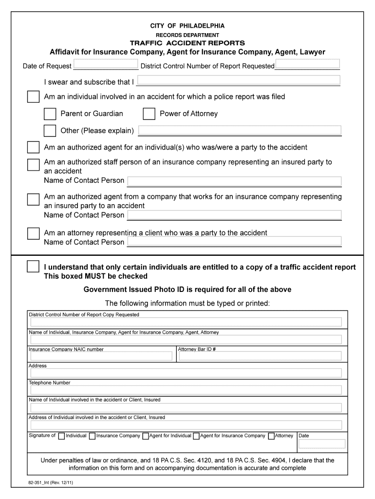 Get the free Affidavit for Insurance Company, Agent for Insurance Company ... - phila