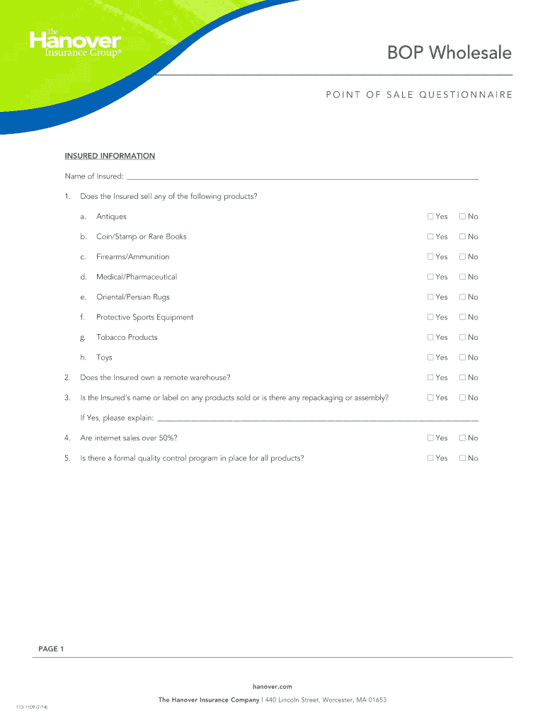 How to fill out BOP Wholesale Point of Sale Questionnaire