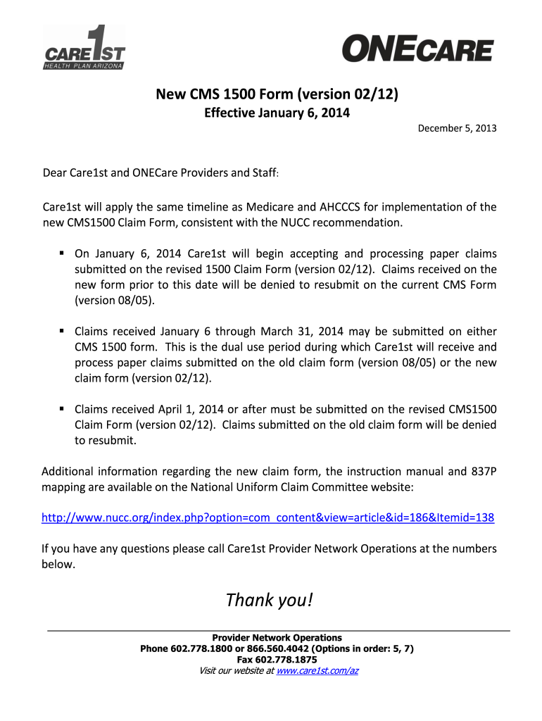 New CMS 1500 Form (version 02/12)