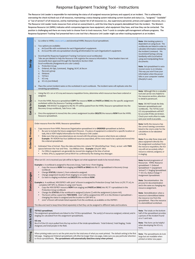 The? Resource? Unit? Leader?is?responsible?for?maintaining?the?status?of?all?assigned?resources?(primary?and?support)?at?an?incident.?? This?is?achieve