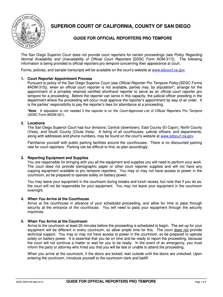 Get the free Guide for Official Reporters Pro Tempore - Superior Court, San Diego - sdcourt ca
