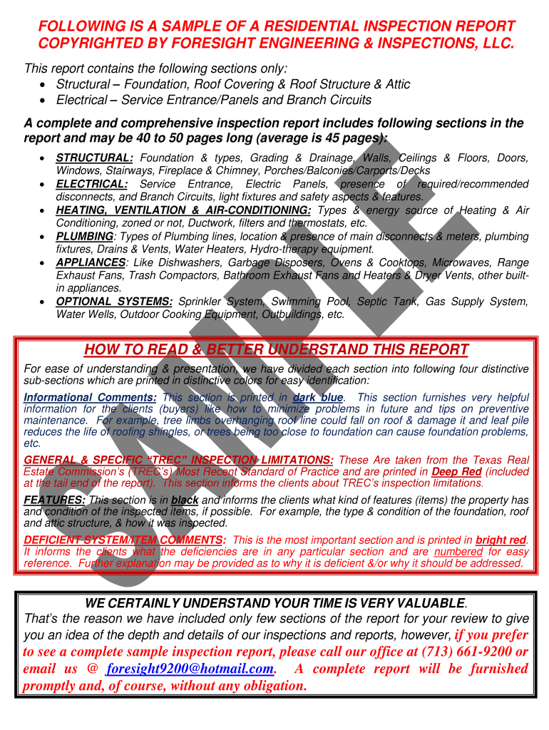 Get the free Following is a sample of a residential inspection report
