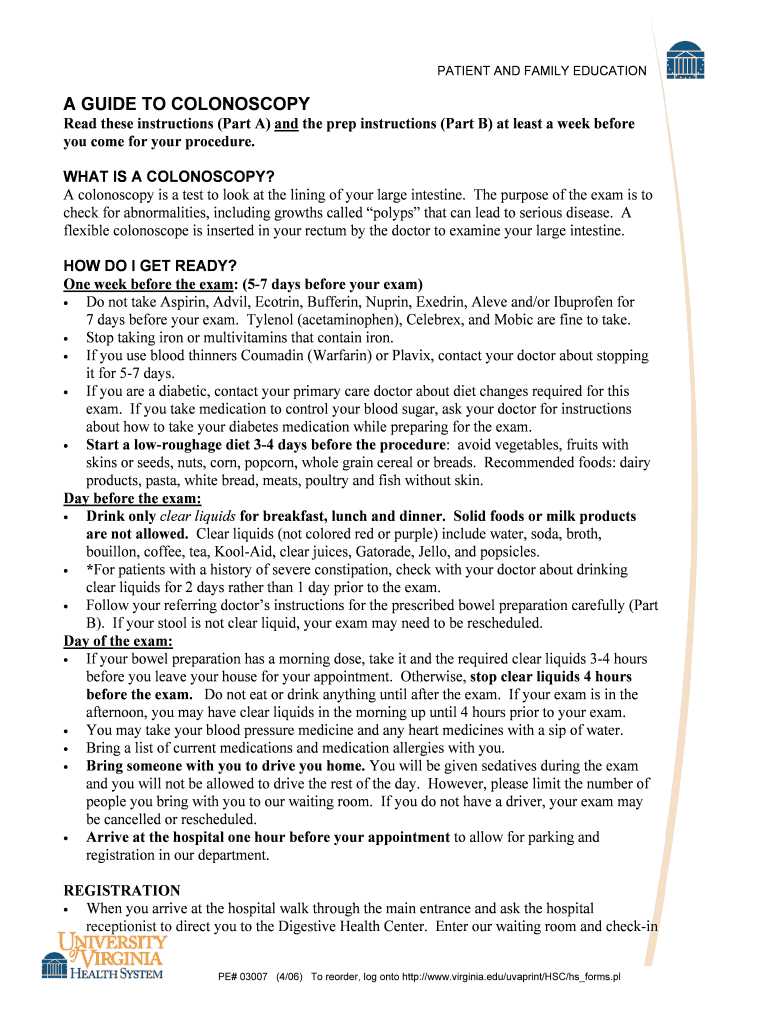 Get the free A GUIDE TO COLONOSCOPY - medicine virginia