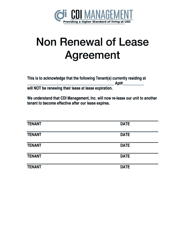 Get the free NON RENEWAL OF LEASE NOTICE - CDI Management