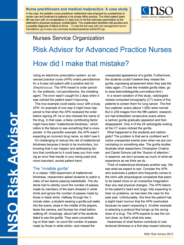 Get the free Nurse practitioners and medical malpractice A case study