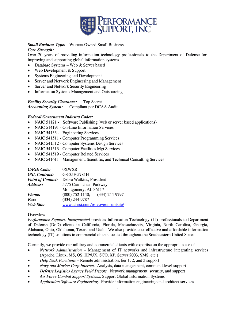 Get the free Small Business Type: Women-Owned Small Business
