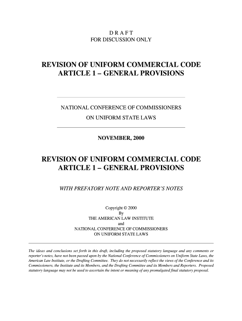 DRAFT FOR DISCUSSION ONLY REVISION OF UNIFORM COMMERCIAL CODE ARTICLE 1 GENERAL PROVISIONS NATIONAL CONFERENCE OF COMMISSIONERS ON UNIFORM STATE LAWS NOVEMBER 2000 REVISION OF UNIFORM COMMERCIAL CODE