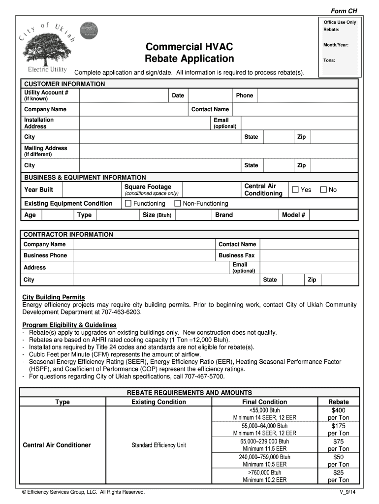 Get the free Commercial HVAC Rebate Application - City of Ukiah