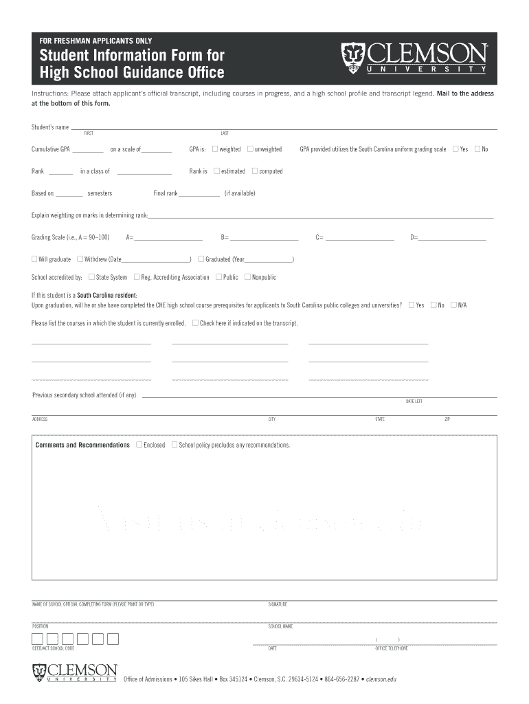 Get the free Visit us at clemson.edu. - ApplyWeb
