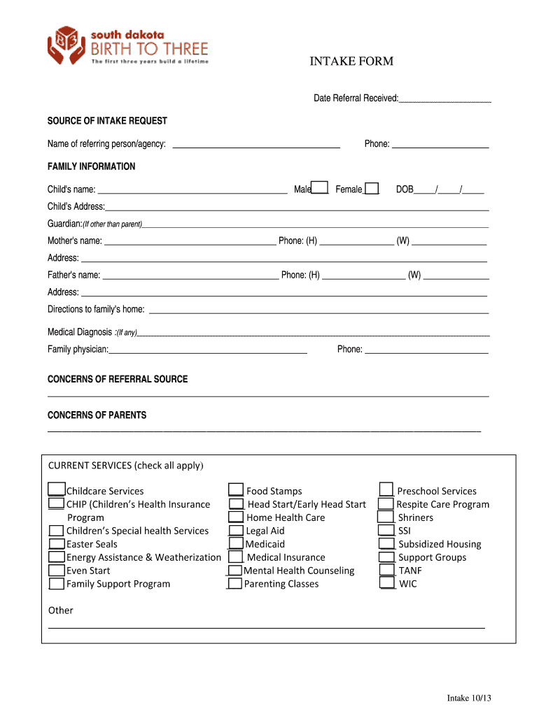 Get the free INTAKE FORM.docx - doe sd