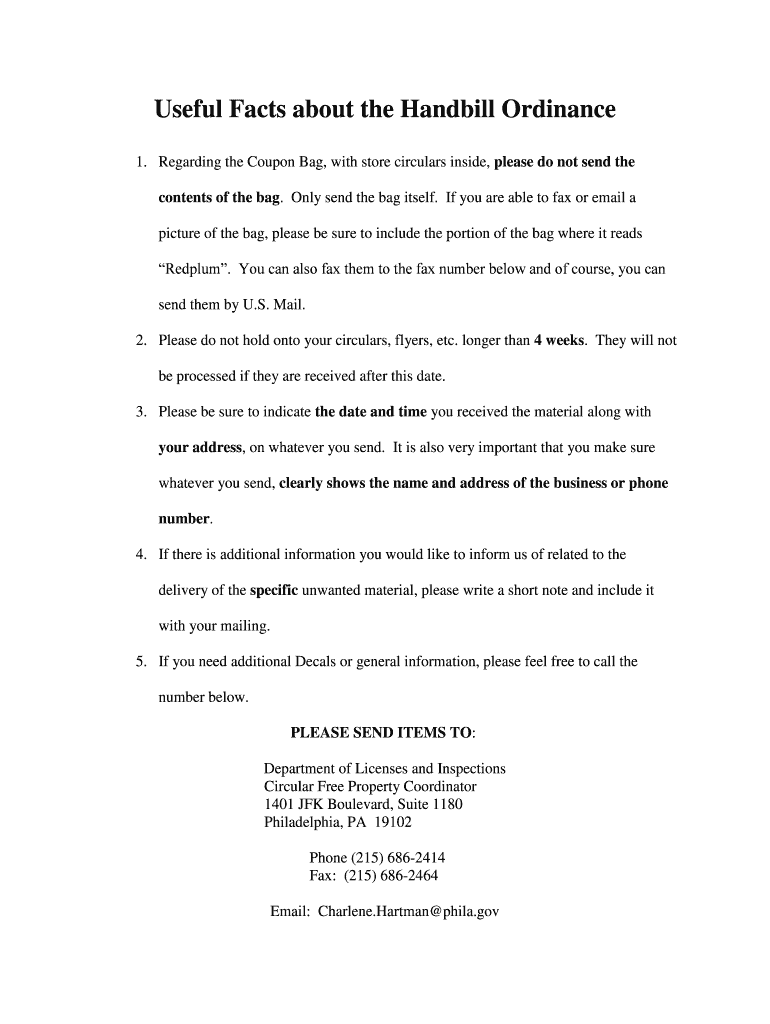 Get the free Useful Facts about the Handbill Ordinance - phila