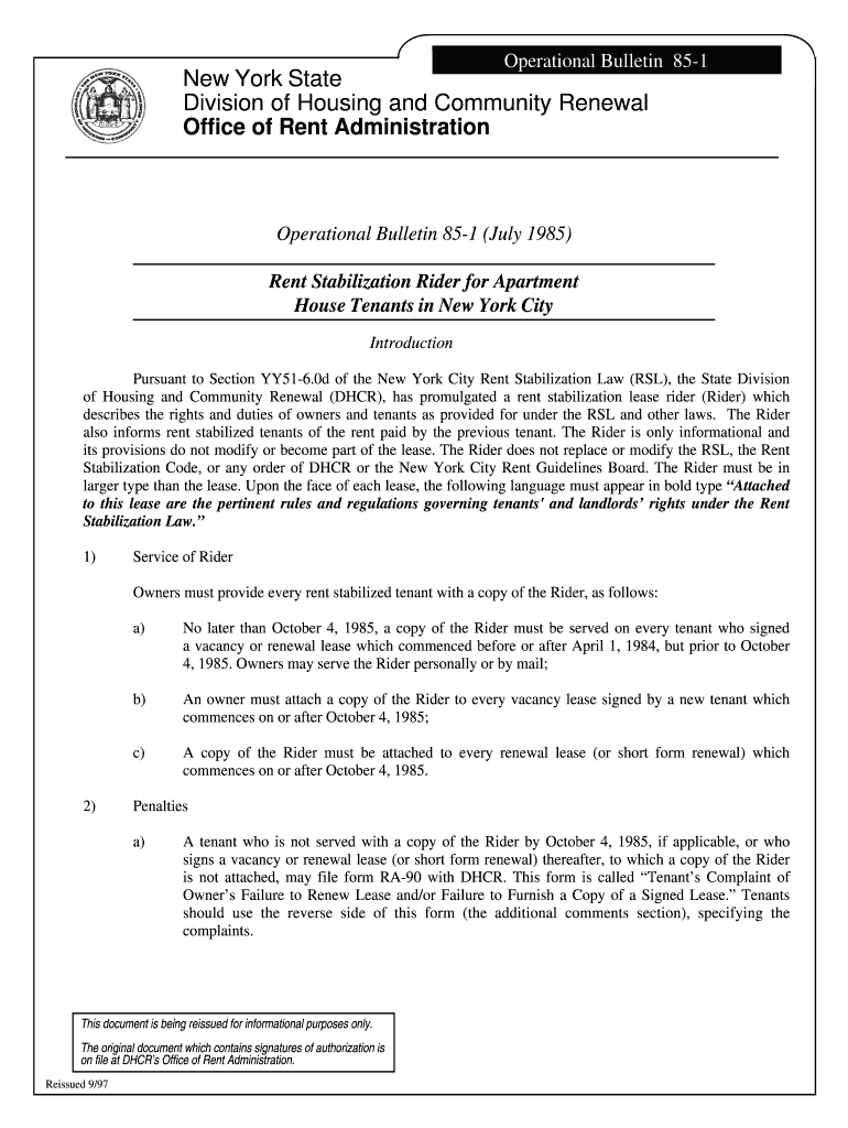 Its provisions do not modify or become part of the lease. ... Copies of the Rider are available from Lumber's Law Products and any legal stationery store, the ...