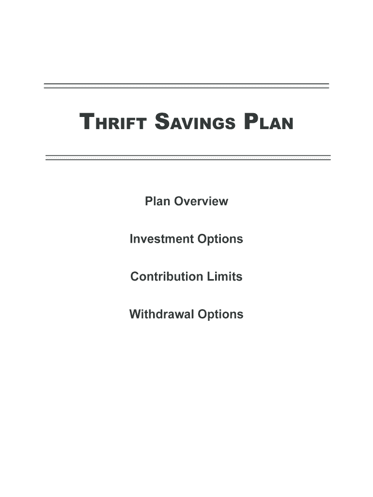Thrift Savings Plan Overview Investment Options Contribution Limits Withdrawal Options Thrift Savings Plan (TSP) Contents Investment Options..................................................................................................