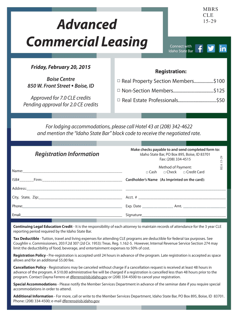 Real Estate Professionals. ... Make checks payable to and send completed form to: ... Commercial Real Estate Leases: Preparation, Negotiation and Forms.
