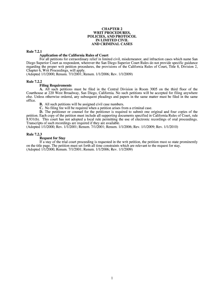 CHAPTER 2 WRIT PROCEDURES, POLICIES, AND PROTOCOL IN LIMITED CIVIL AND CRIMINAL CASES Rule 7.2.1 Application of the California Rules of Court For all petitions for extraordinary relief in limited