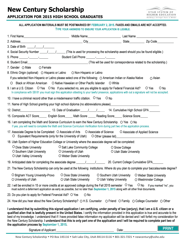 Get the free In order to qualify for the New Century Scholarship a student must complete the - hi...