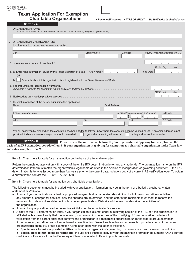 The AP-205 application for exemption must be filled out with accurate and complete information regarding the taxpayer's eligibility for exemption.