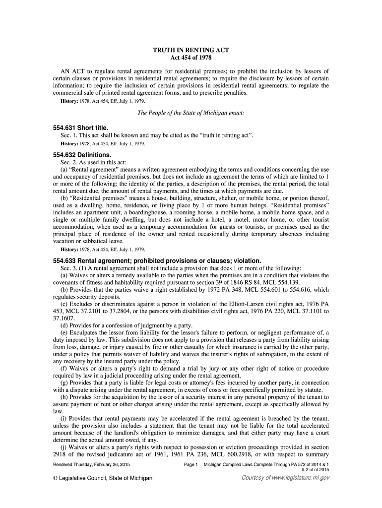 Get the free TRUTH IN RENTING ACT Act 454 of 1978 AN ACT to regulate rental ... - legislature mi
