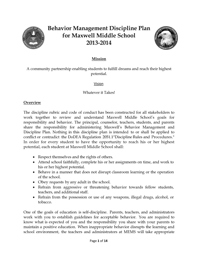 Get the free Behavior Management Discipline Plan - dodea