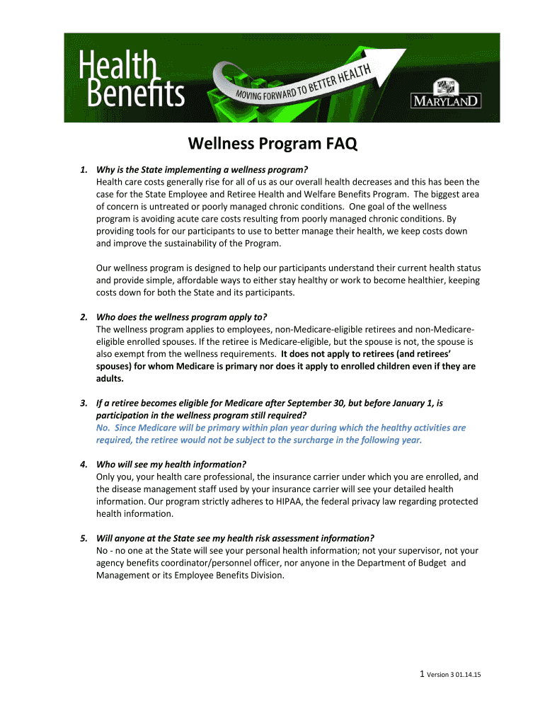 Get the free Wellness Program FAQs - dbm maryland