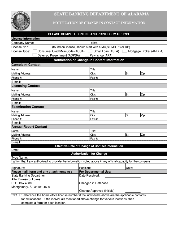 Get the free Notification of Change in Contact Information - Alabama State ... - banking alabama