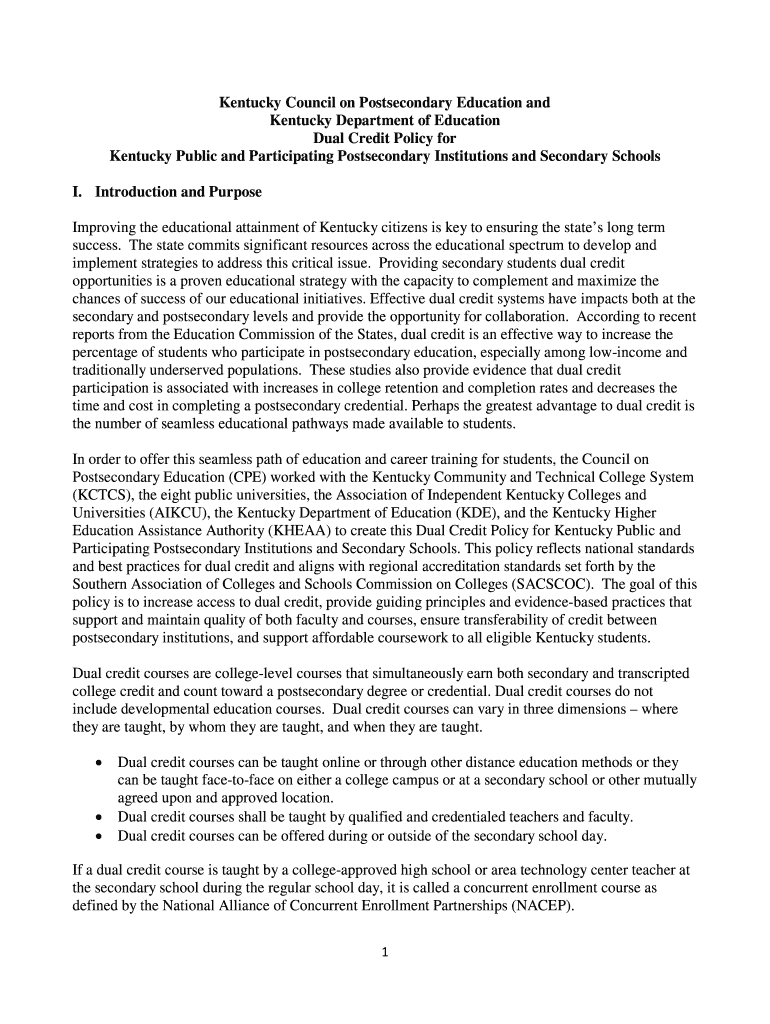 The purpose of dual credit policy is to provide high school students with the opportunity to get a head start on their college education and save money on tuition costs.