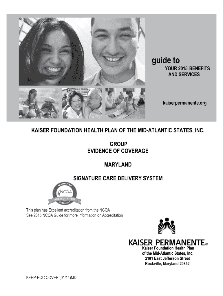 Guide to YOUR 2015 BENEFITS AND SERVICES Kaiser Permanante.org KAISER FOUNDATION HEALTH PLAN OF THE MID-ATLANTIC STATES, INC. KAISER FOUNDATION HEALTH PLAN OF THE MID-ATLANTIC STATES, INC. GROUP EVIDENCE