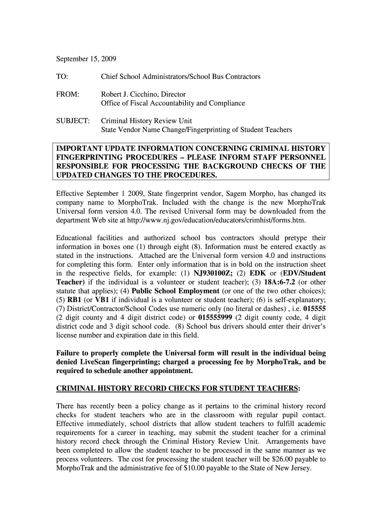 Get the free Fingerprinting Vendor Name Change and Fingerprinting Student ... - nj