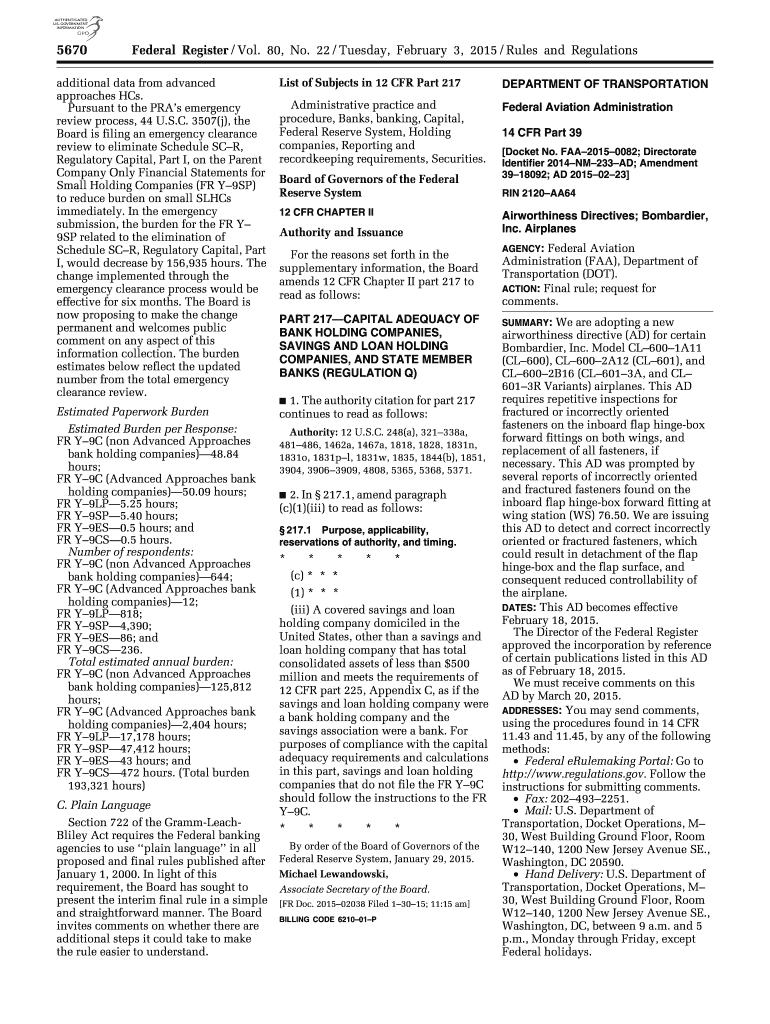 5670 Federal Register / Vol. 80, No. 22 / Tuesday, February 3, 2015 / Rules and Regulations additional data from advanced approaches HCs. Pursuant to the PRA s emergency review process, 44 U.S.C.