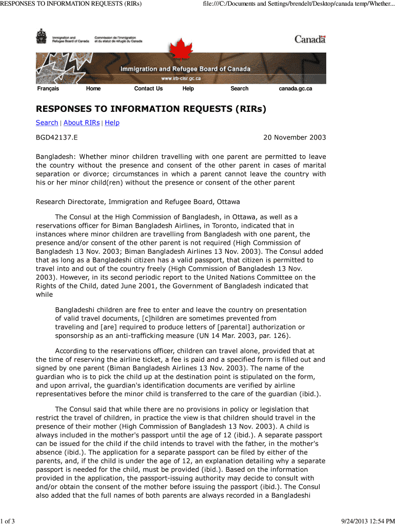 Get the free Whether minor children travelling with one parent are permitted to leave the country...