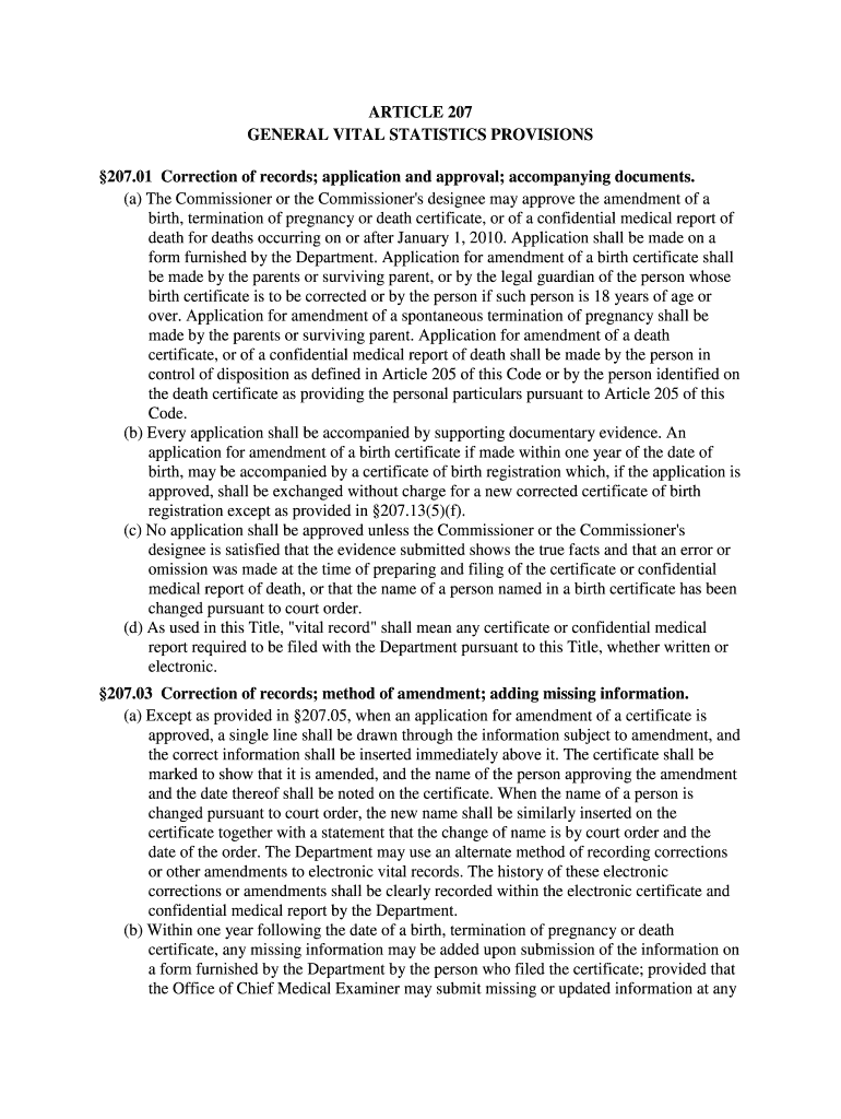 ARTICLE 207 GENERAL VITAL STATISTICS PROVISIONS 207.01 Correction of records; application and approval; accompanying documents. (a) The Commissioner or the Commissioner's designee may approve the