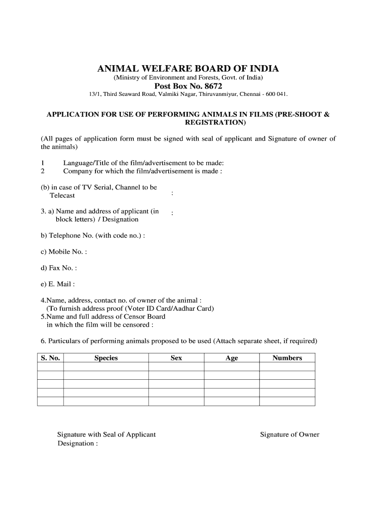 Get the free Appln form.pdf - Animal Welfare Board of India - awbi