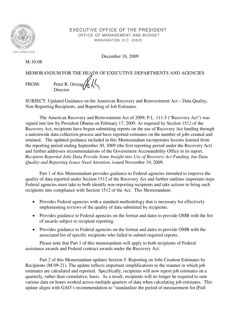 Dec 18, 2009 ... Non-Reporting Recipients, and Reporting of Job Estimates .... agencies shall complete a template on a MAX Community web page (Federal ...