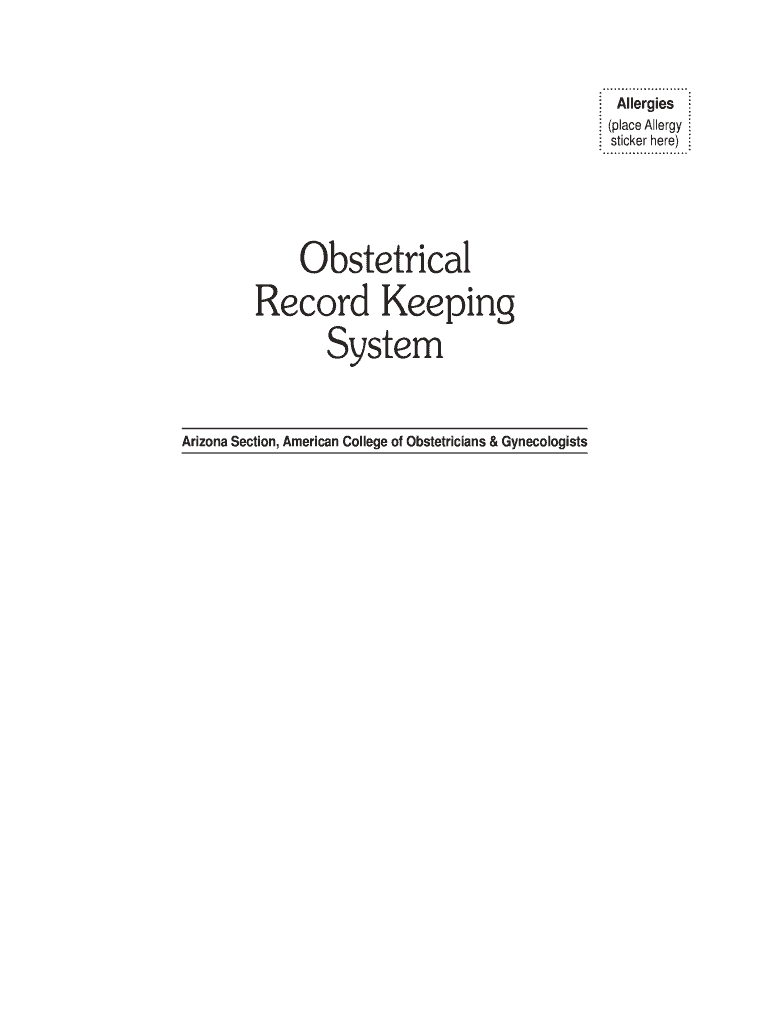 Allergies (place Allergy sticker here) # '34 42,(&$*(02)! “**1,/+ %534×. Arizona Section, American College of Obstetricians & Gynecologists Patient Name ALLERGIES Address Insurance City/State/Zip