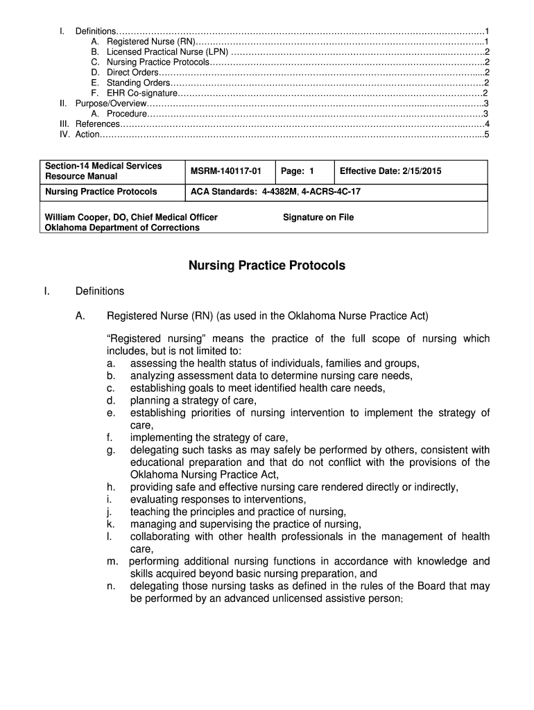 Get the free Nursing Practice Protocols - ok