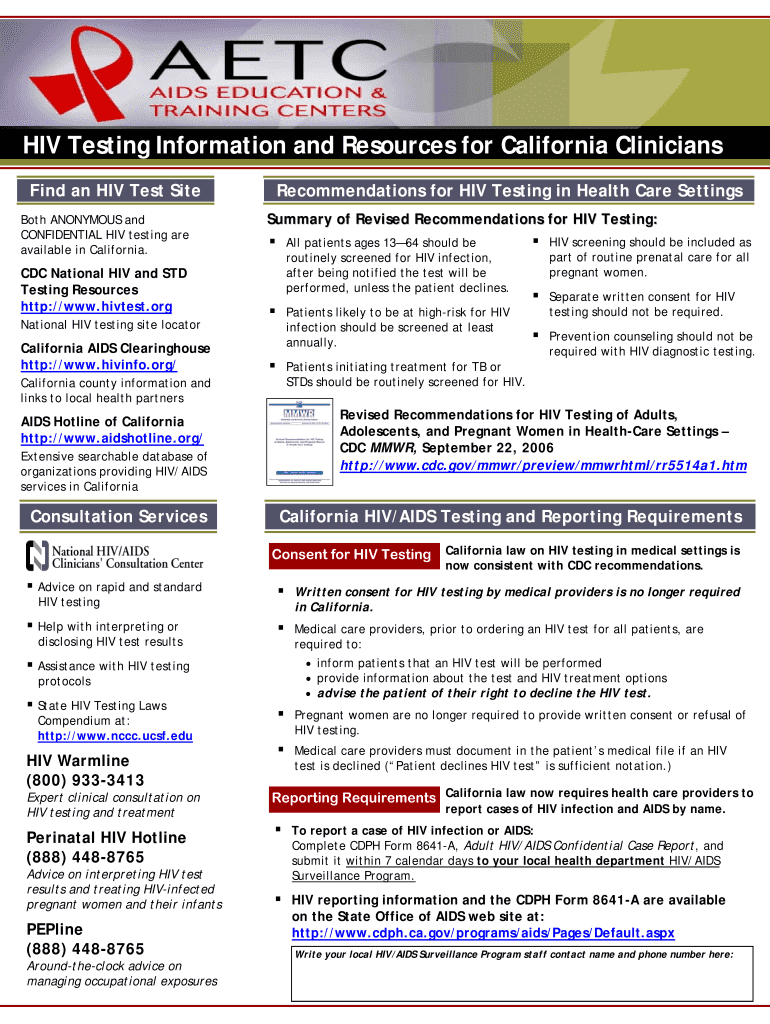 Get the free HIV Testing Information and Resources for California Clinicians - cdph ca