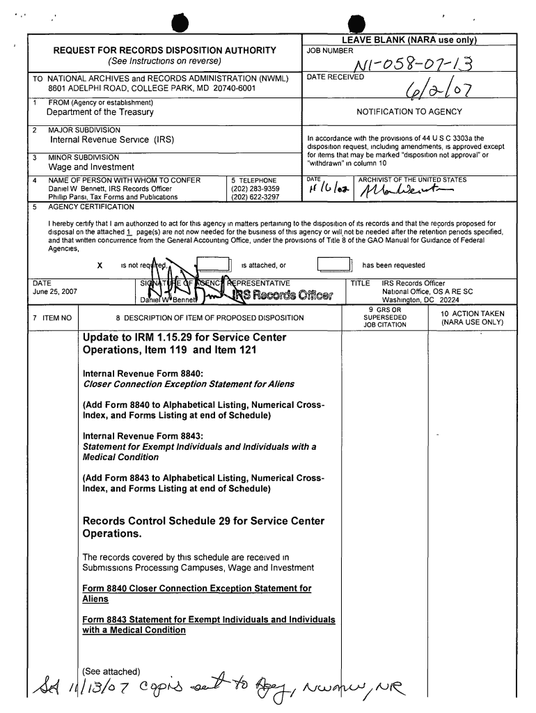 This form is integral in ensuring that agencies remain compliant with IRS regulations concerning record disposal. It provides clarity for both nonresident aliens and agencies about the disposal process.