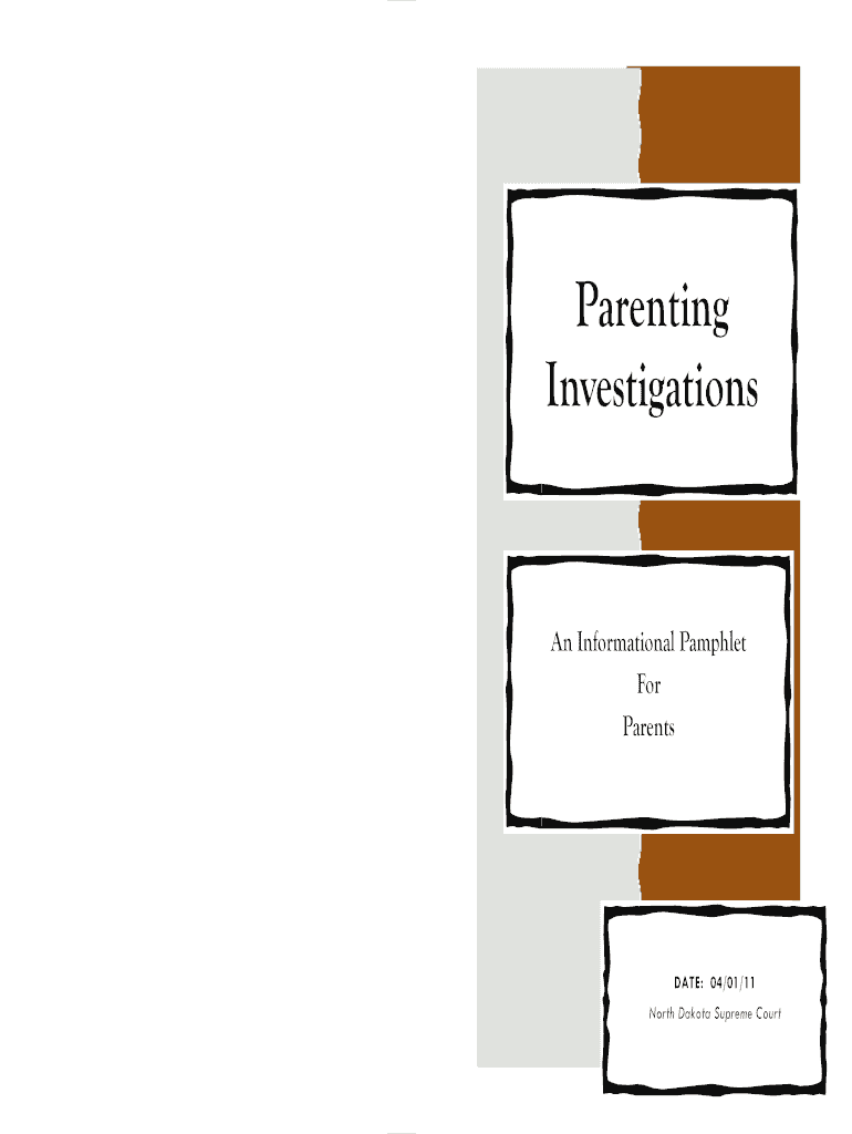 Parenting Investigations An Informational Pamphlet For Parents DATE: 04/01/11 North Dakota Supreme Court Preparing for your parenting evaluation The court has ordered a Parenting Investigator to participate
