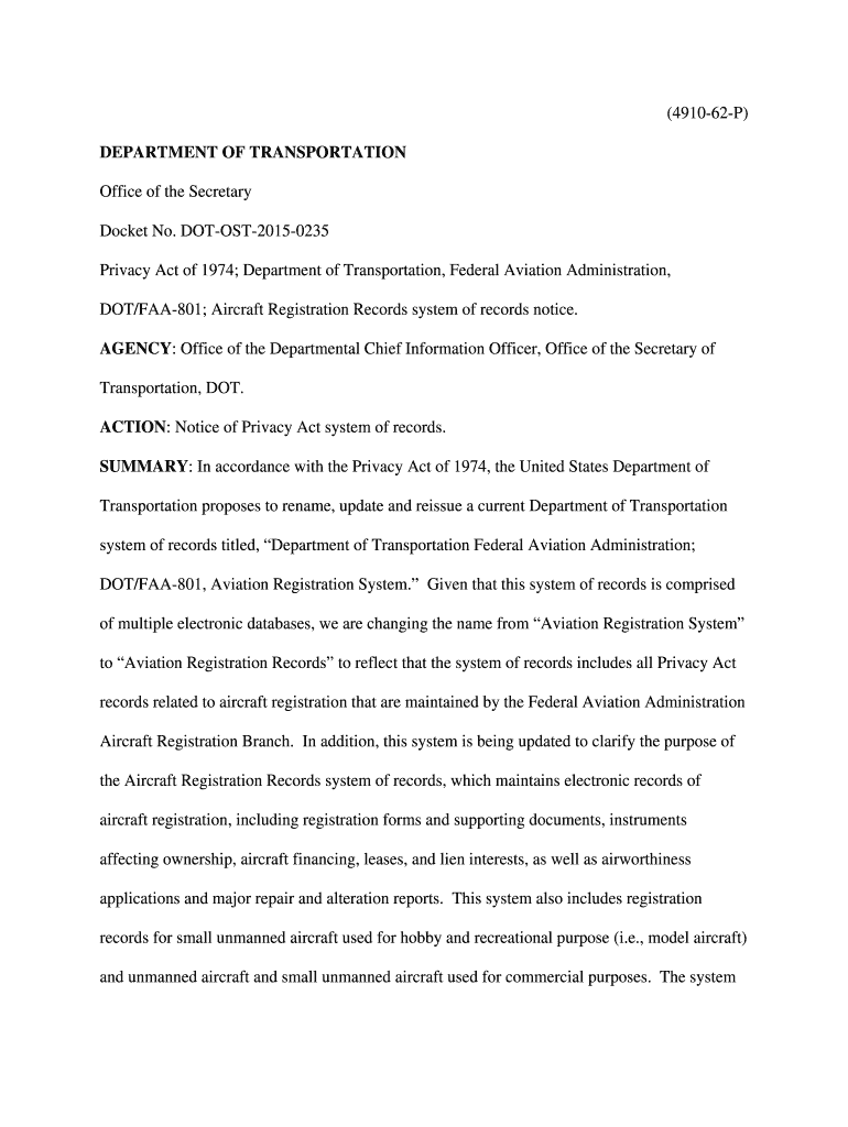 Get the free Aircraft Registration Records System of Records Notice - faa