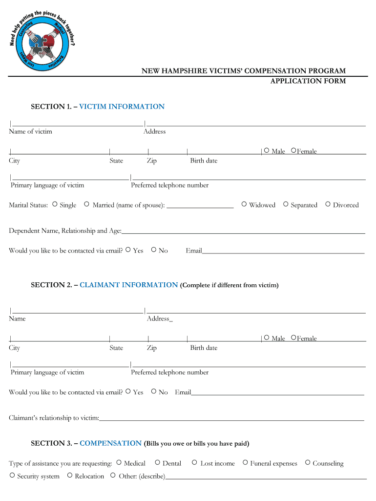 How to fill out new hampshire victims compensation?