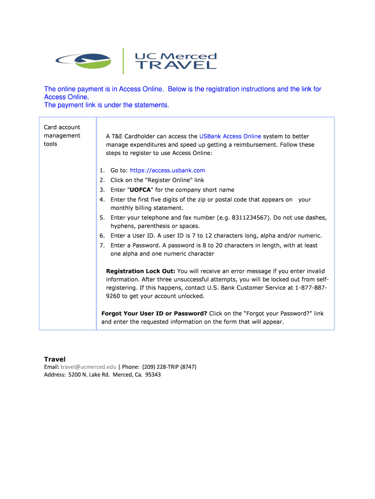 The online payment is in Access Online. Below is the registration instructions and the link for Access Online. The payment link is under the statements. Card account management tools A T&E Cardholder