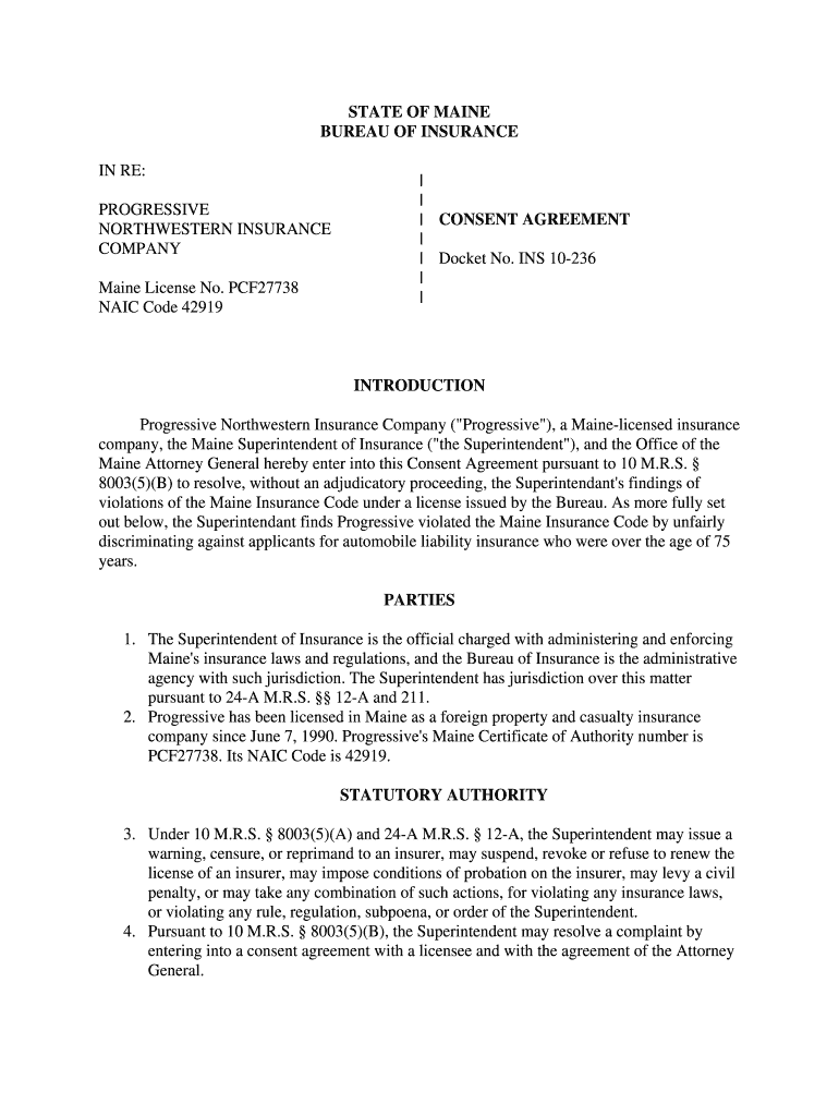 Get the free Docket No INS 10-236 Consent Agreement Progressive Northwestern Insurance Company - ...