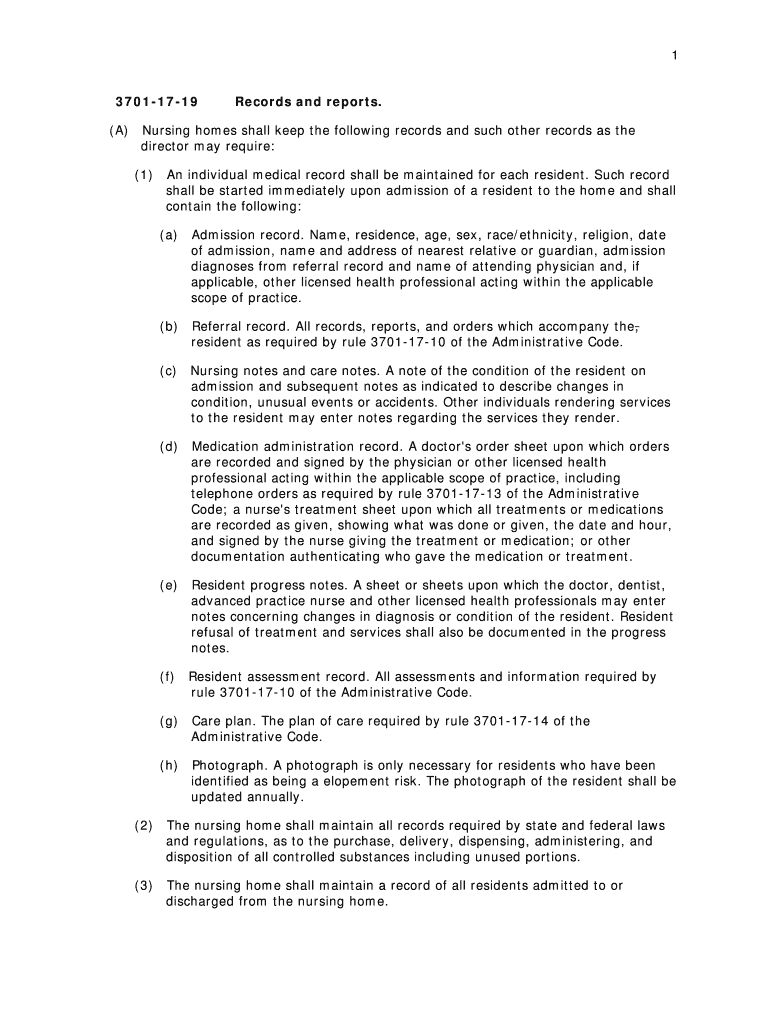 Get the free 1 3701-17-19 Records and reports A Nursing homes shall keep - odh ohio