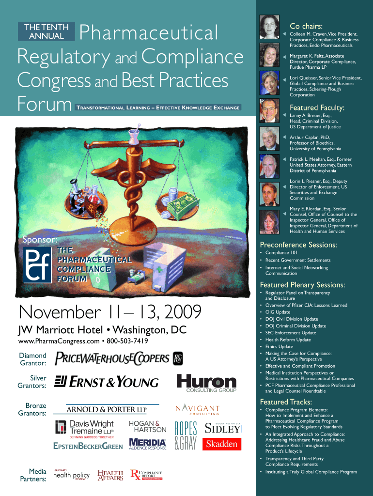 Colleen M. Craven, Vice President, Corporate Compliance & Business Practices, End Pharmaceuticals Pharmaceutical Regulatory and Compliance Congress and Best Practices Forum Co chairs: Margaret K.