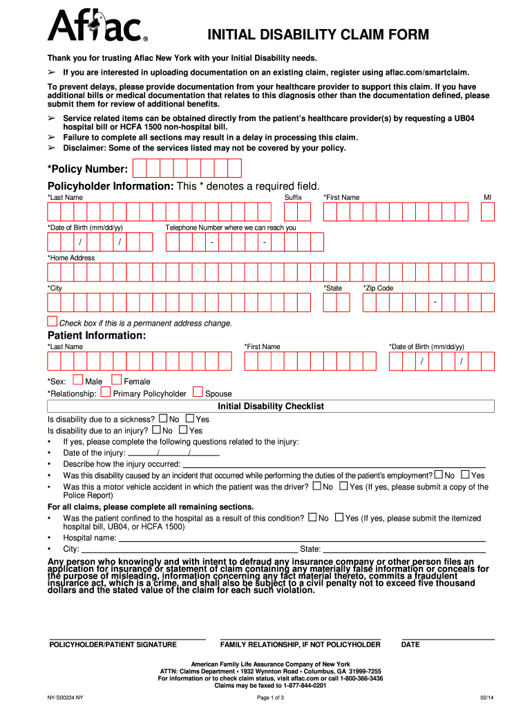 Get the free Thank you for trusting Aflac New York with your Initial Disability needs