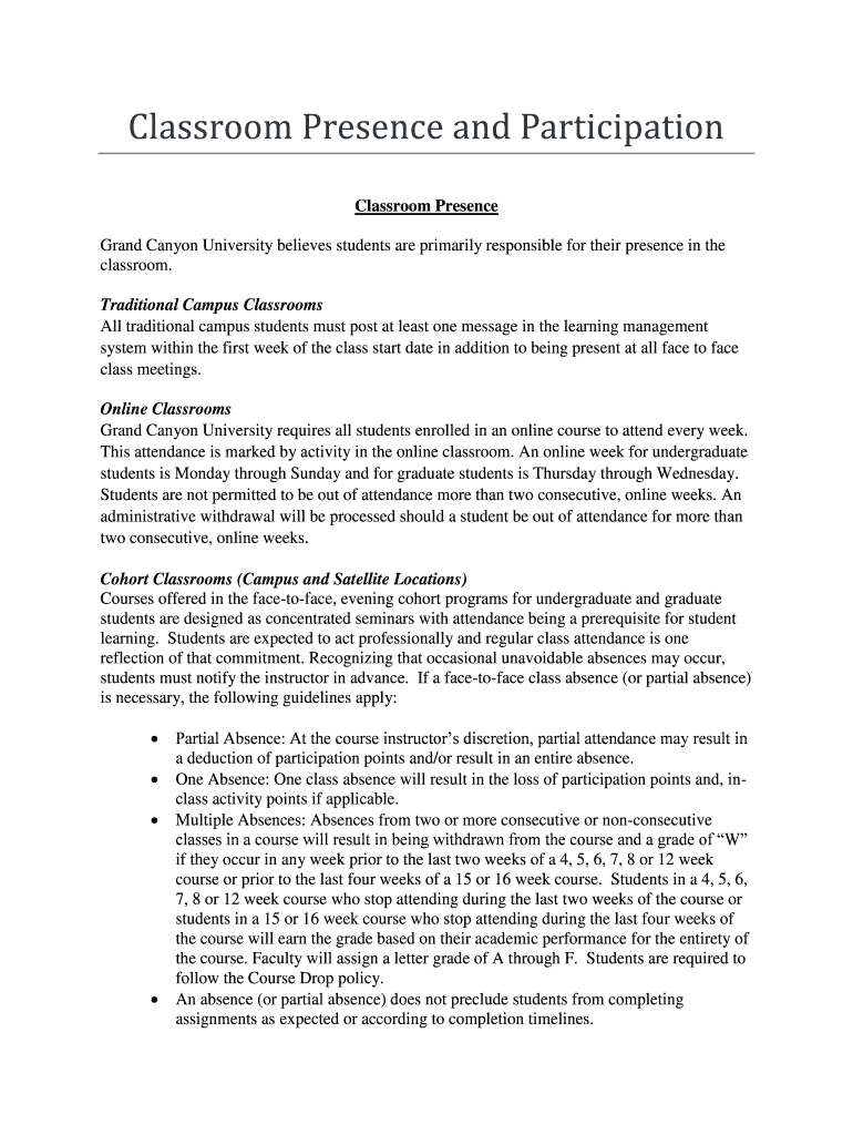 Classroom presence and participation refers to the act of attending class and actively engaging in discussions and activities.